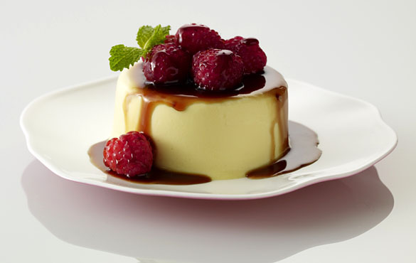 Eggnog Panna Cotta with Raspberries and a Balsamic Vinegar Glaze